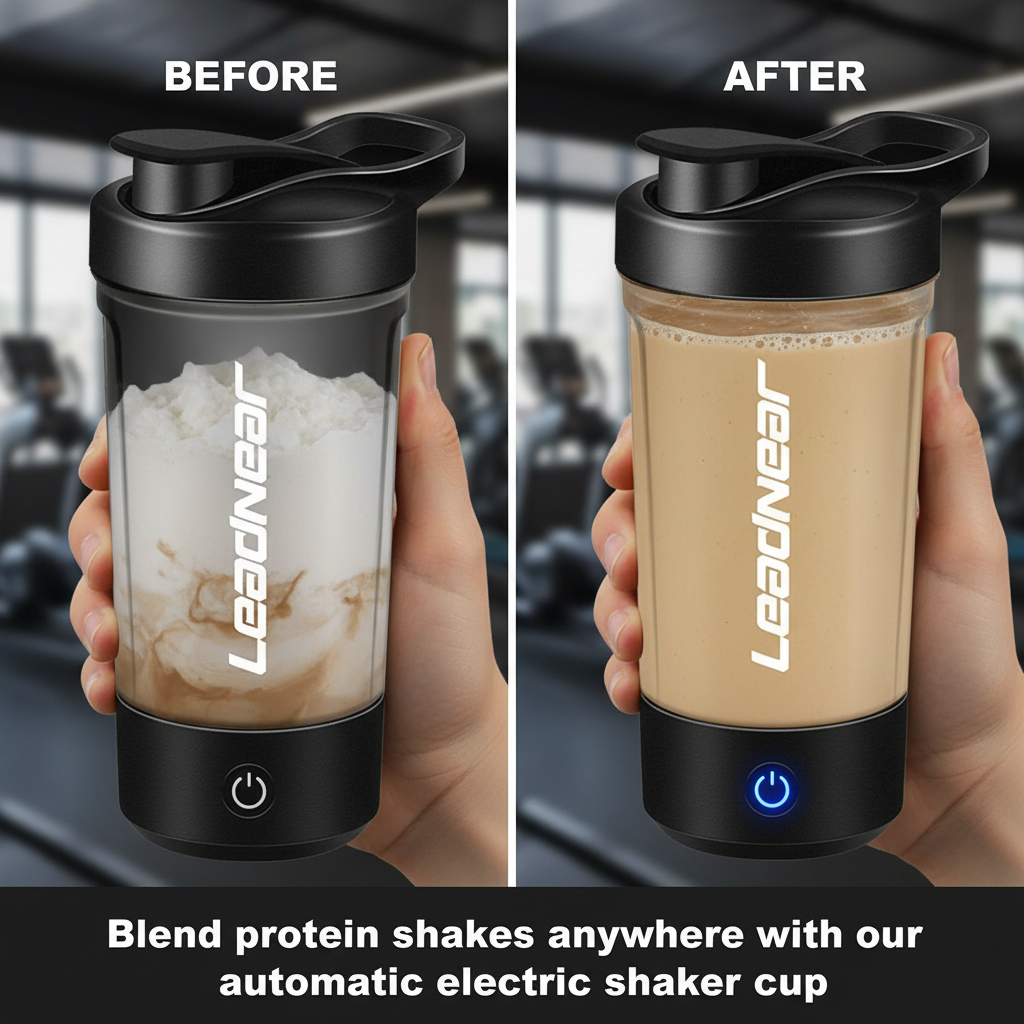 Blend protein shakes anywhere with our automatic electric shaker cup. Perfect for gym, travel, and outdoor adventures. Lightweight, powerful, and rechargeable for smoothies on-the-go.